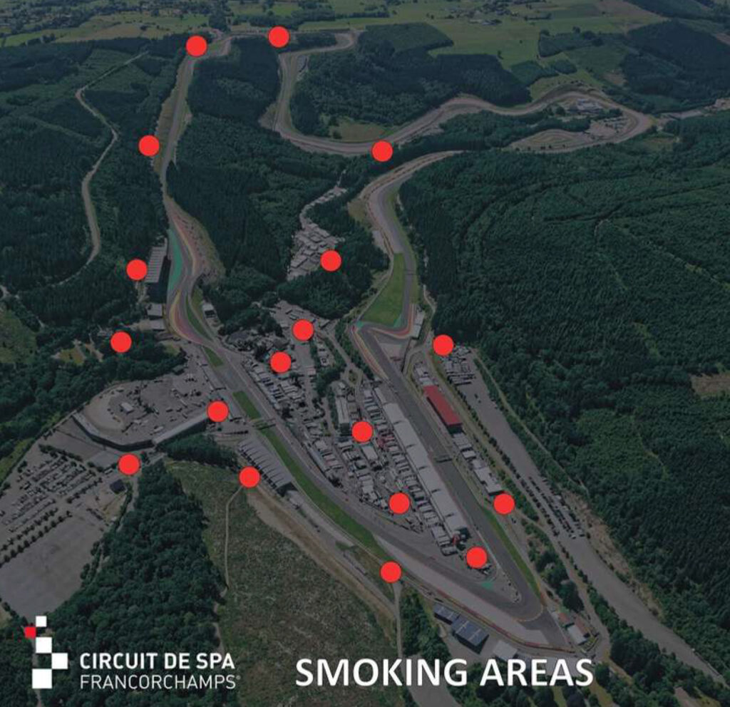 Er zijn rookzones ingericht in de paddocks en rondom het Circuit.